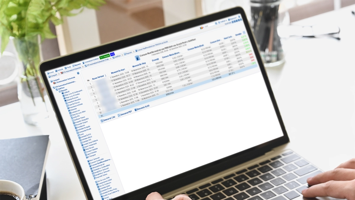 Generează rapoarte complete despre activitatea flotei cu statistici.