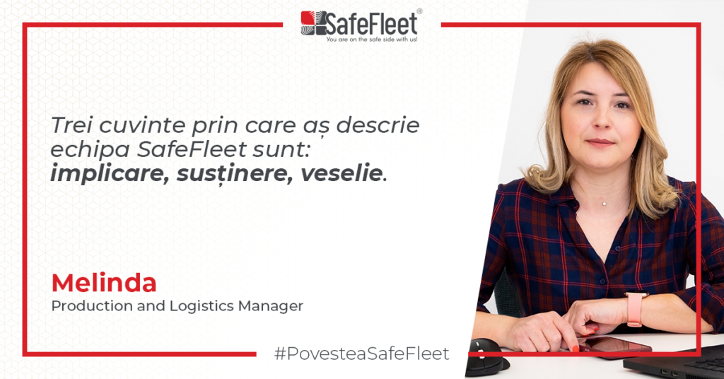 Colega noastră, Melinda, face parte din echipa SafeFleet încă din anul 2018. În prezent, ocupă postul de Production and Logistics Manager și cel mai mult la rolul ei o atrage interacțiunea pe care o are cu persoane diferite (printre care furnizorii, colaboratorii) și colegii din diferite departamente.