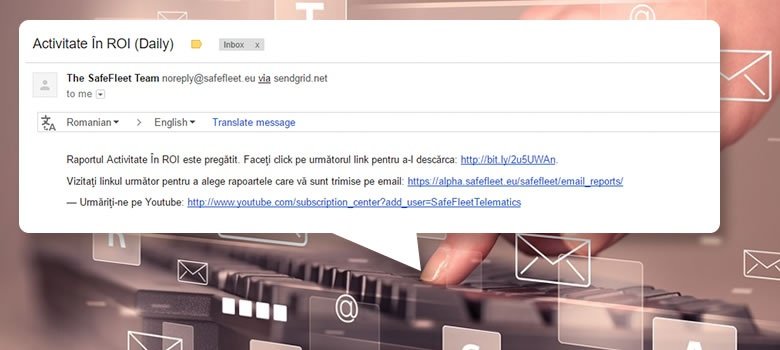 În urma discuțiilor pe care le-am avut de-a lungul timpului cu clienții noștri, am remarcat un interes foarte mare pentru accesarea de rapoarte într-un mod cât mai flexibil și dinamic. Am făcut astfel posibil și accesibil acest lucru prin cea mai recentă funcționalitate SafeFleet: Raportare Pe Email.