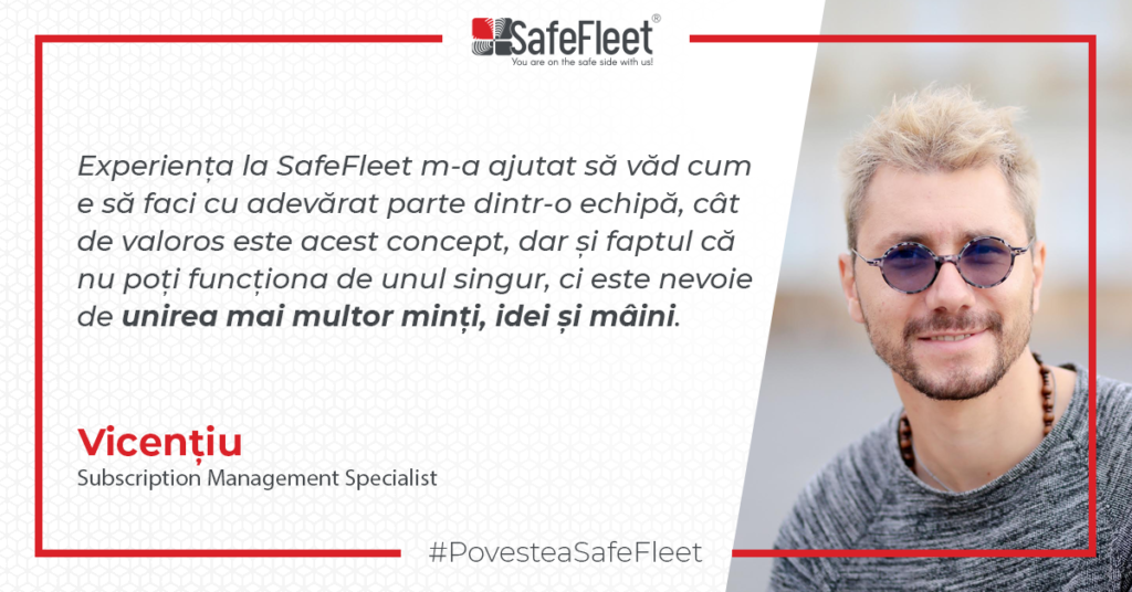 Plin de energie și pus pe fapte bune, Vicențiu face parte din #PovesteaSafeFleet încă din anul 2015, iar în prezent ocupă postul de Subscription Management Specialist.