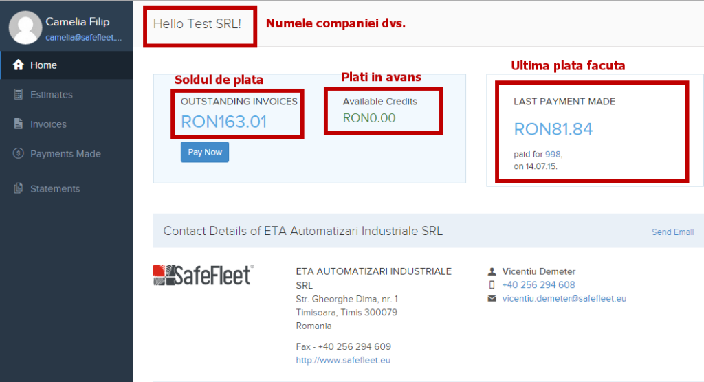 Echipa SafeFleet aduce o noua interfata prin care fiecare client se poate loga pentru a-si vedea facturile, platile si fisa partener. SafeFleet Client Portal, noul portal pentru clienti, permite adaugarea de comentarii la facturi, descarcarea facturilor, schimbarea adresei de corespondenta si alte functionalitati interesante.