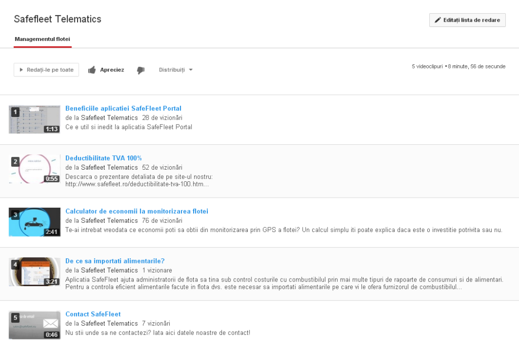 Administratorii de flota pot acum primi sfaturi de gestiune a flotei daca se aboneaza la canalul nostru de Youtube, in special daca urmaresc lista noastra: Managementul flotei.