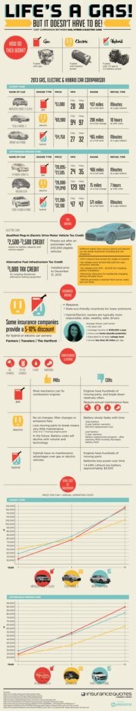 Insurancequotes a realizat un infografic care compara cele trei tipuri de motoare, pentru a vedea care sunt costurile comparative. In cateva cuvinte, aflam care este diferenta intre motorul conventional, motorul electric si hibrid. Aici avem costurile de alimentare diferite, modalitatile de alimentare, mentenanta la service si chiar si costurile cu asigurarea obligatorie. Parca motorul electric nu mai suna asa de rau: